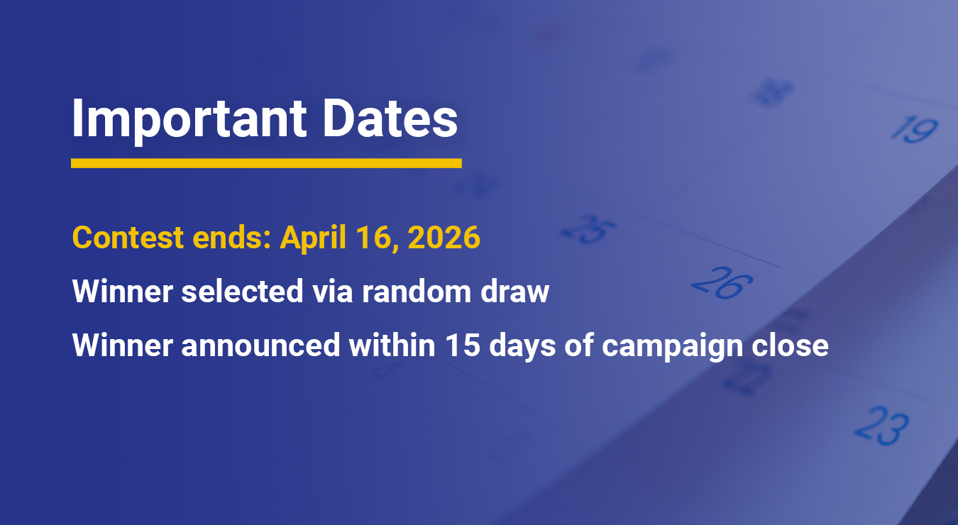 Contest Terms: Contest commences on March 24, 2026 and closes on April 16, 2026 at 11:59:59 pm Eastern Standard Time.